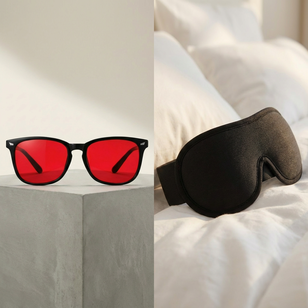 ZESTAW Okulary blokujące światło niebieskie + Opaska na oczy do snu